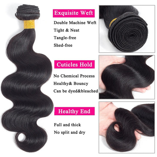 Beaufox Body Wave Bundles With Closure Remy Brazilian Hair Weave
