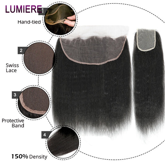 Kinky Yaki Straight Human Hair Bundles With Closure Frontal HD Transparent Brazilian Deep Curly Hair Bundles Deal Hair Extension