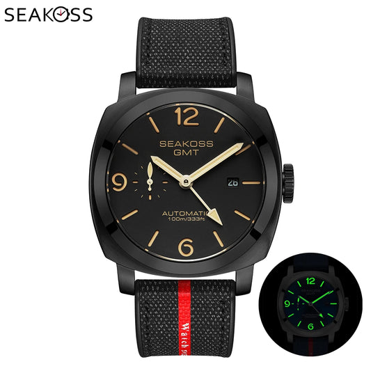 SEAKOSS Men GMT Automatic Mechanical Watches Super Luminous Calendar Original Seagull ST2557 Movement Nylon Rubber Wristwatches