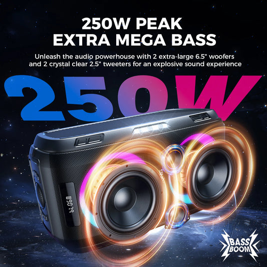 W-KING 250W PEAK Large Bluetooth Speaker Loudest/Massive 120dB/12 Custom Bass, V5.3 Big Party Boombox Portable Speaker Wireless