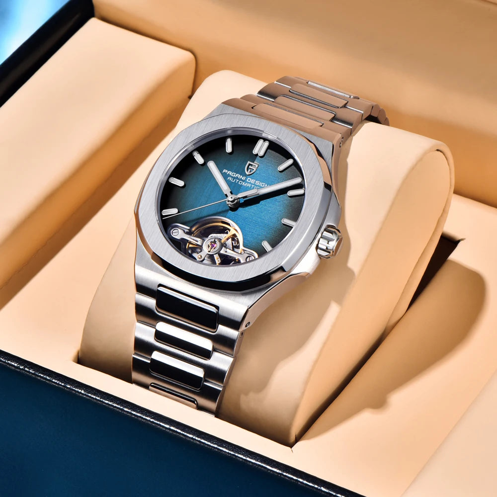 Experience the PAGANI DESIGN Skeleton Tourbillon Automatic Men's Watch—where engineering meets refined style.