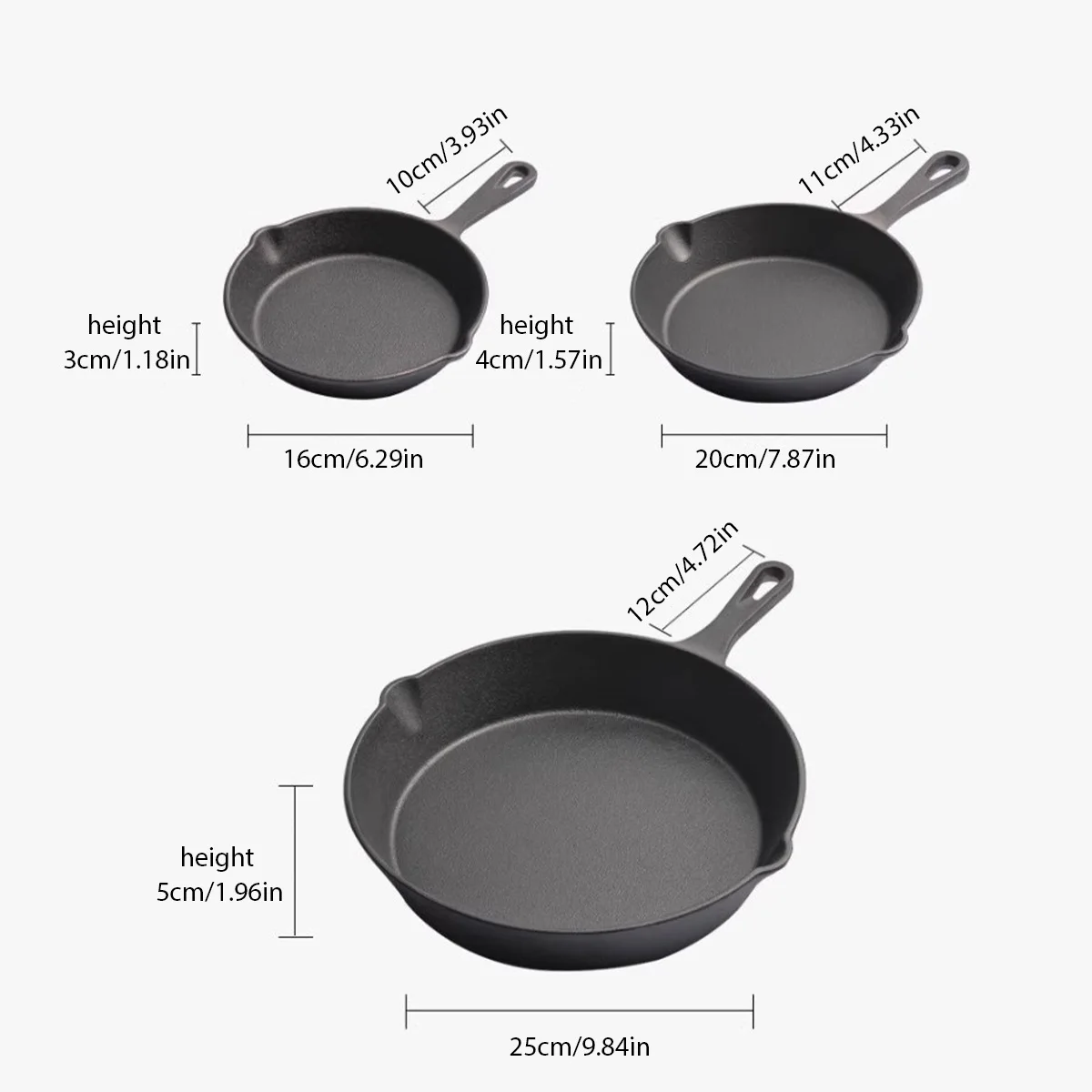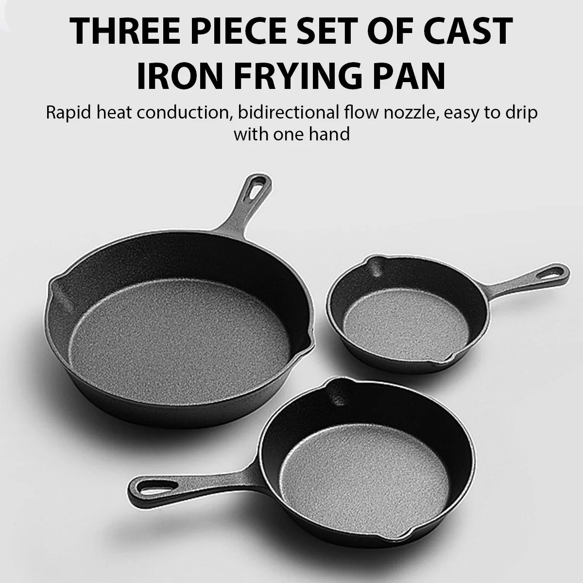 3PCS Cast Iron Skillet Non-Stick Pancake Steak Frying Pan Mini Meat Egg Skillet Home Flat Bottom Pan Cookware Oil Splatter Pot
