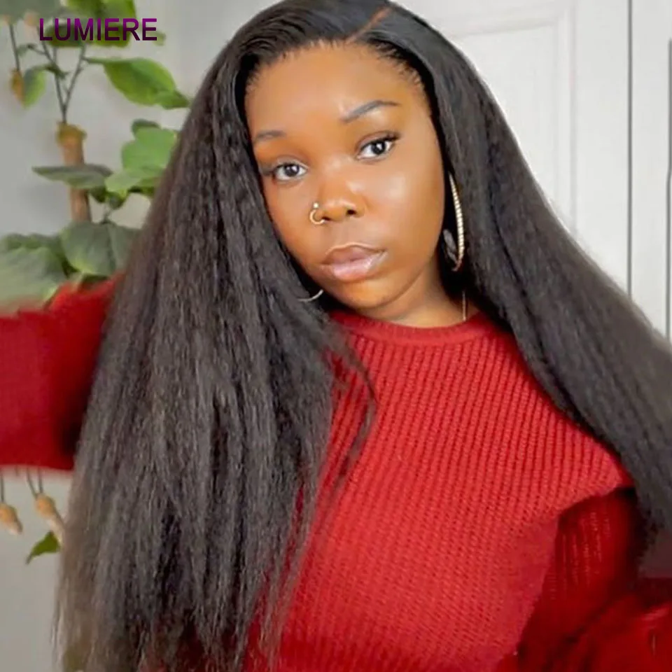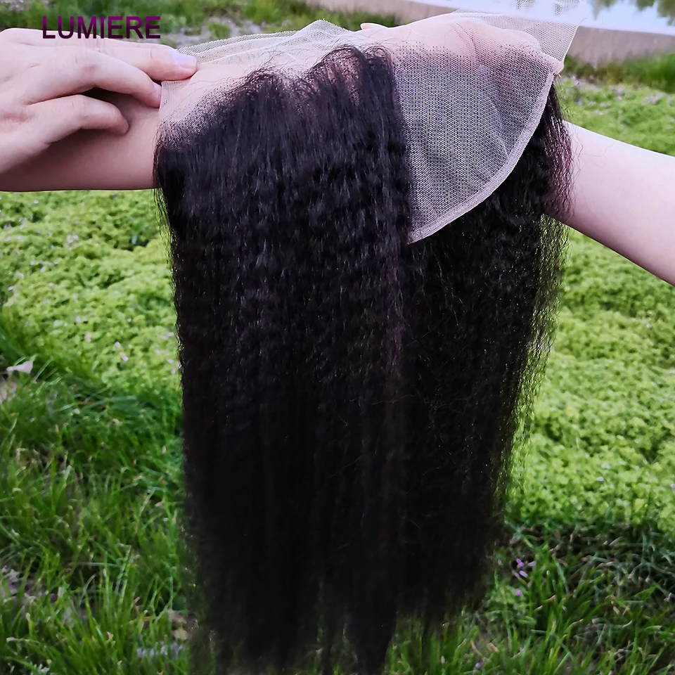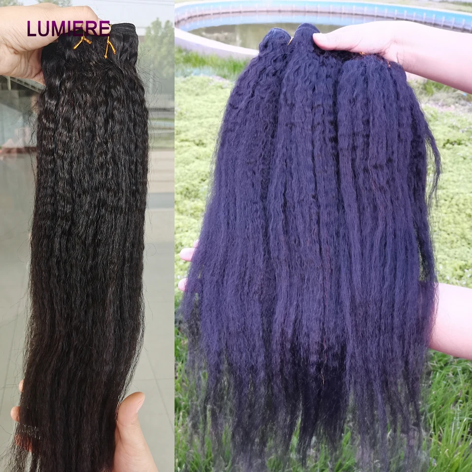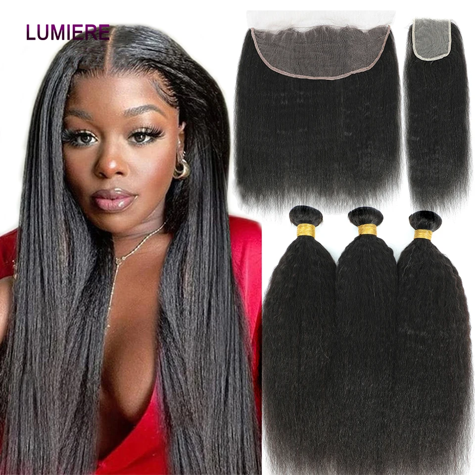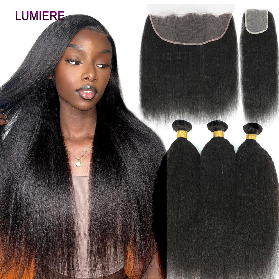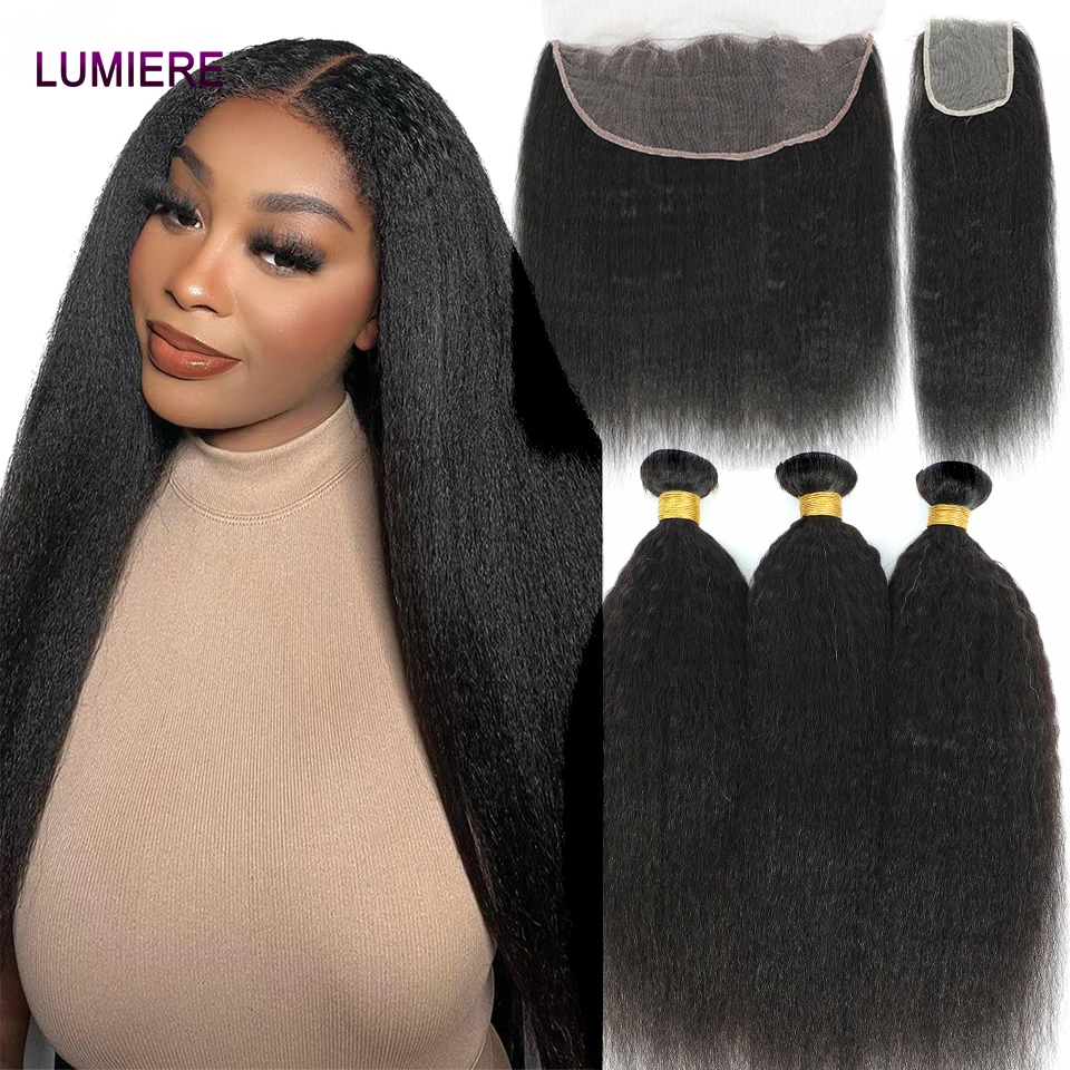 30 40"Kinky Straight Human Hair Bundles With Closure Brazilian Deep Curly Hair Weave Bundles With Frontal Closure Hair Extension