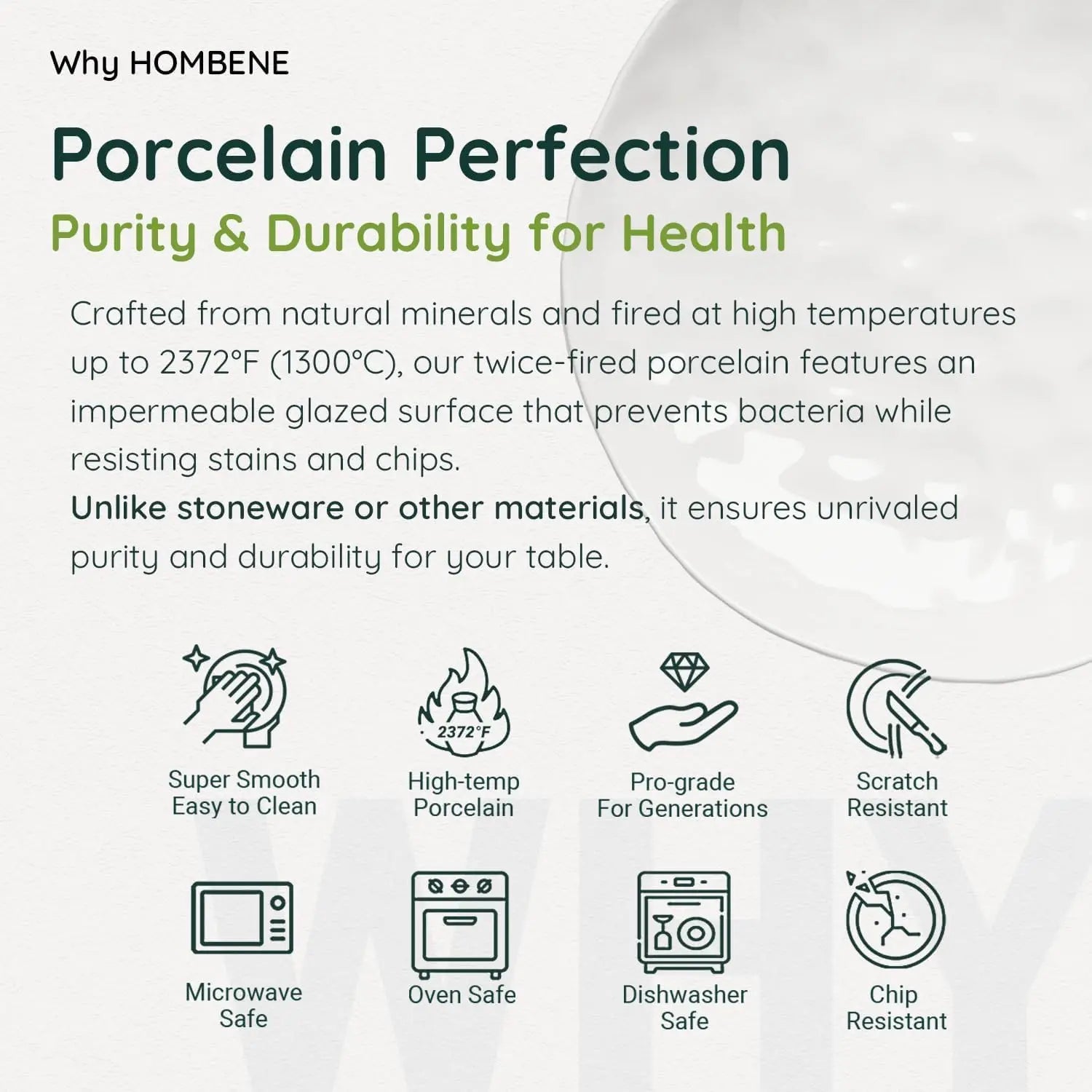 - Durable porcelain with a smooth glaze resists chips and stains, while a timeless shape shines at the table and during year-round entertaining.