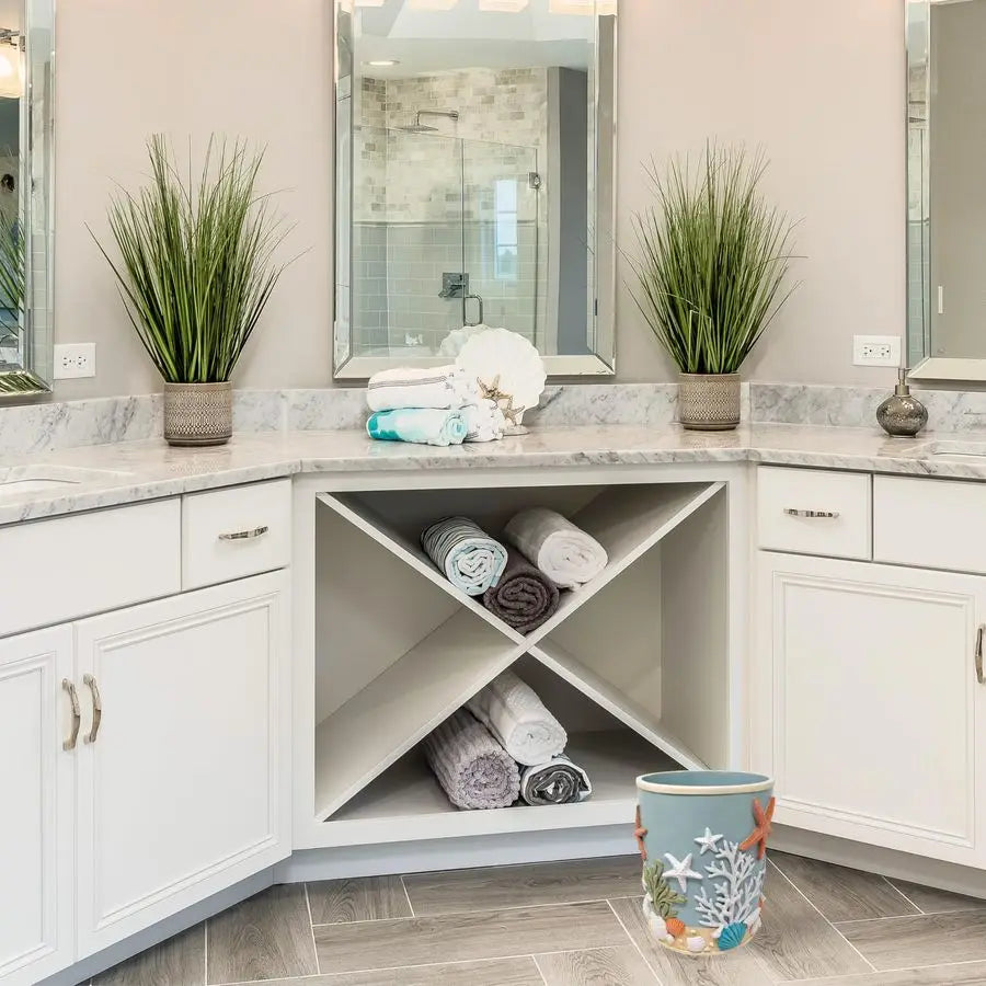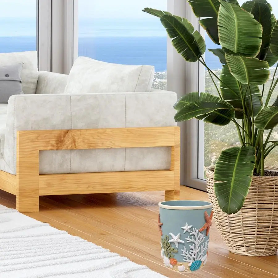Bring coastal charm to your space with the XMSJ Splendor 3D Resin Ocean Wastebasket, a lifelike beach-inspired accent that blends whimsy with everyday practicality.