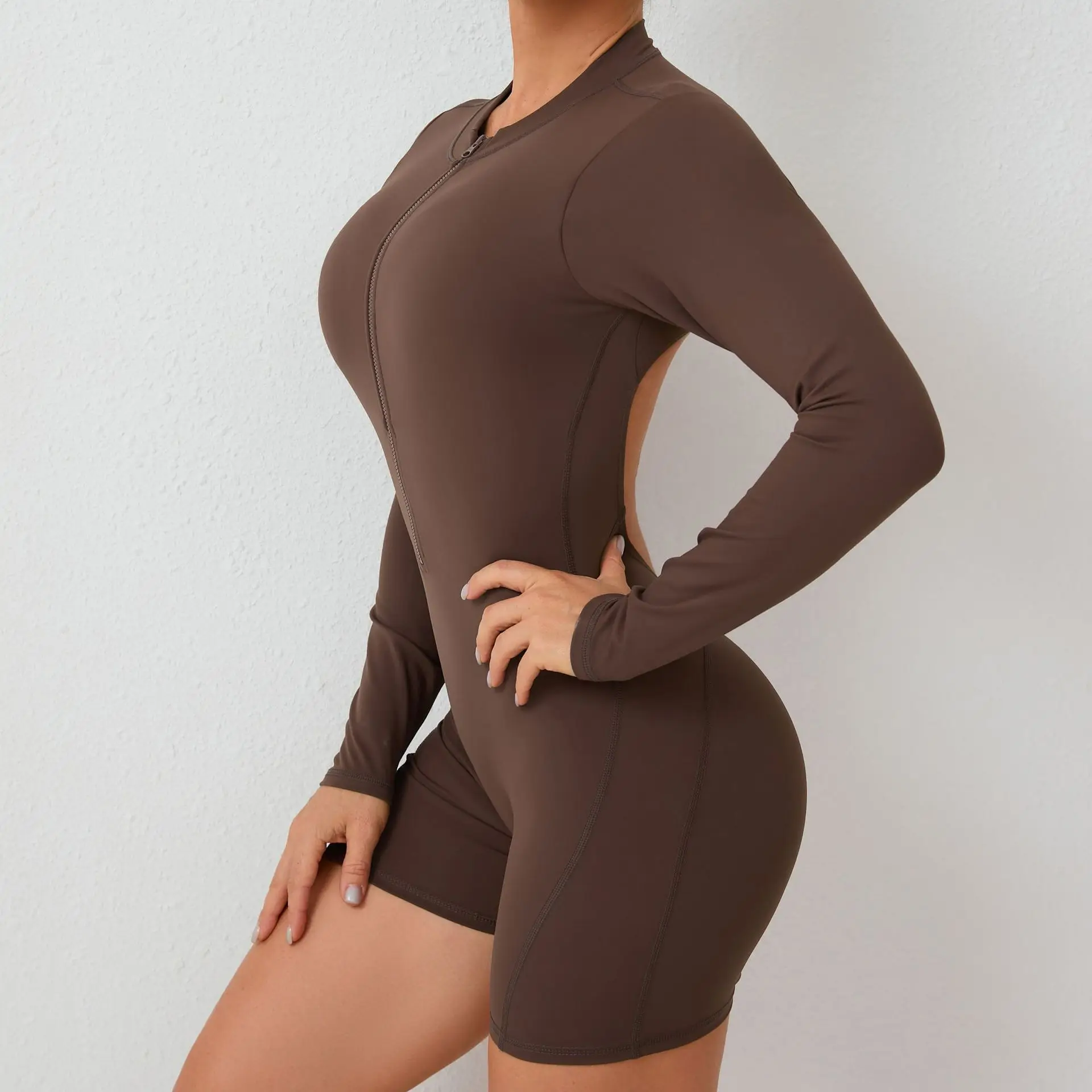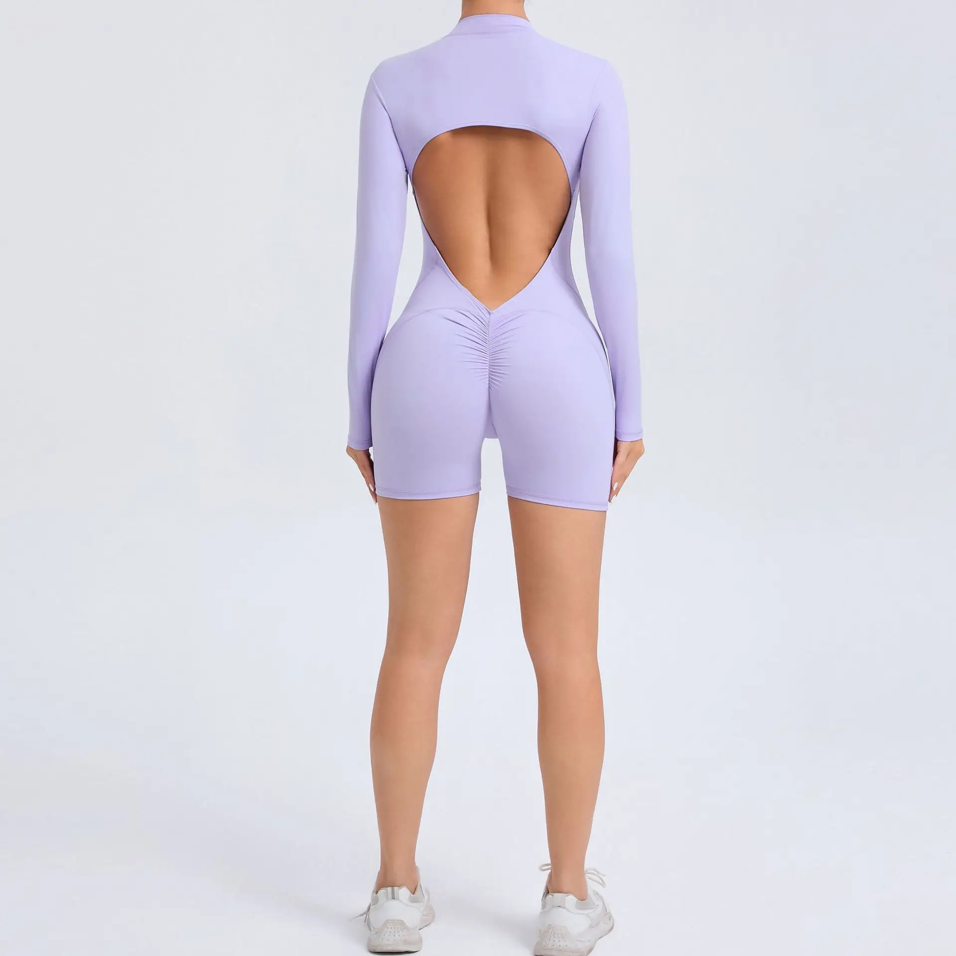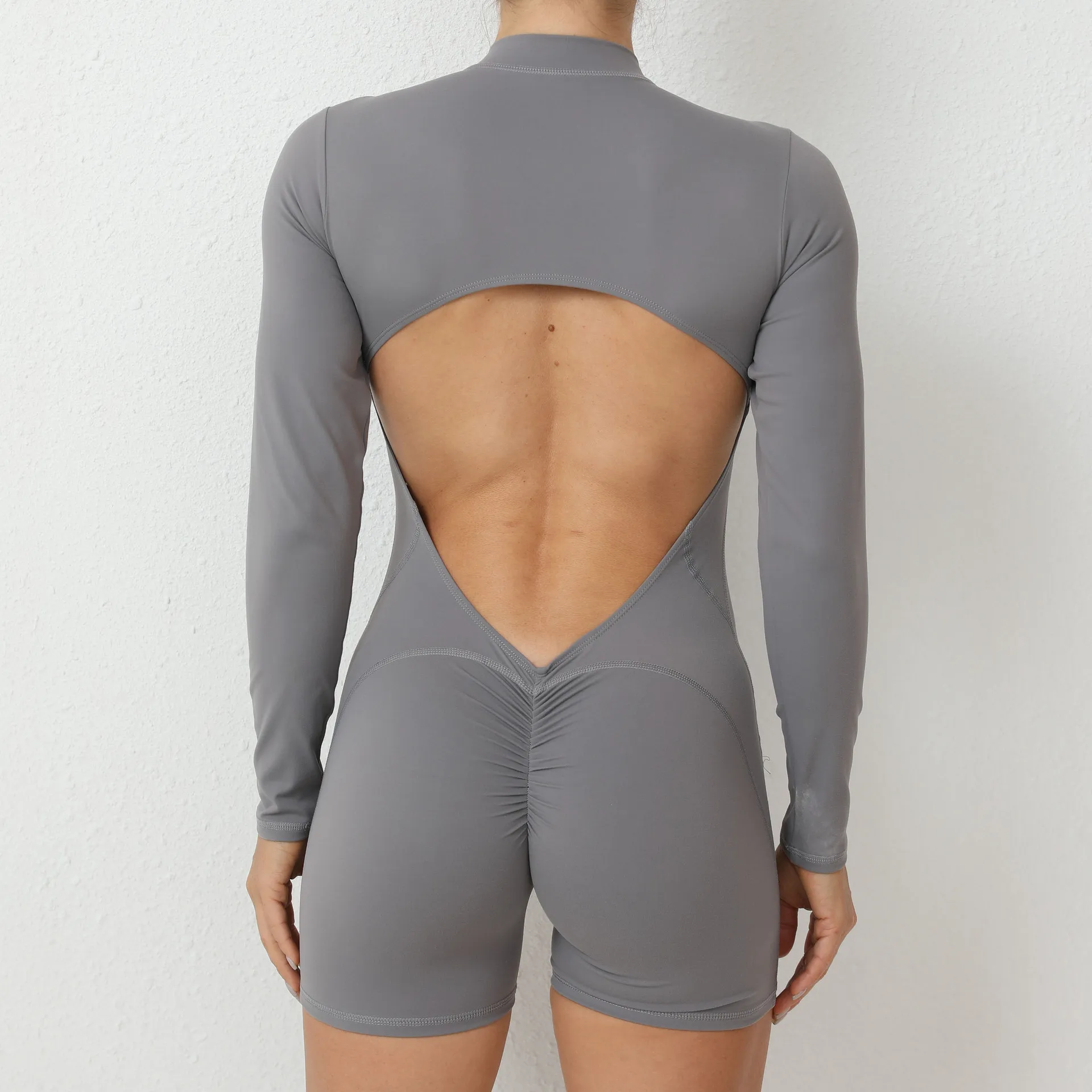 V Back Scrunch One-Piece Suit Push Up Sports Jumpsuit Woman Fitness Zipper Overalls Workout Rompers Women Gym Bodysuits Female