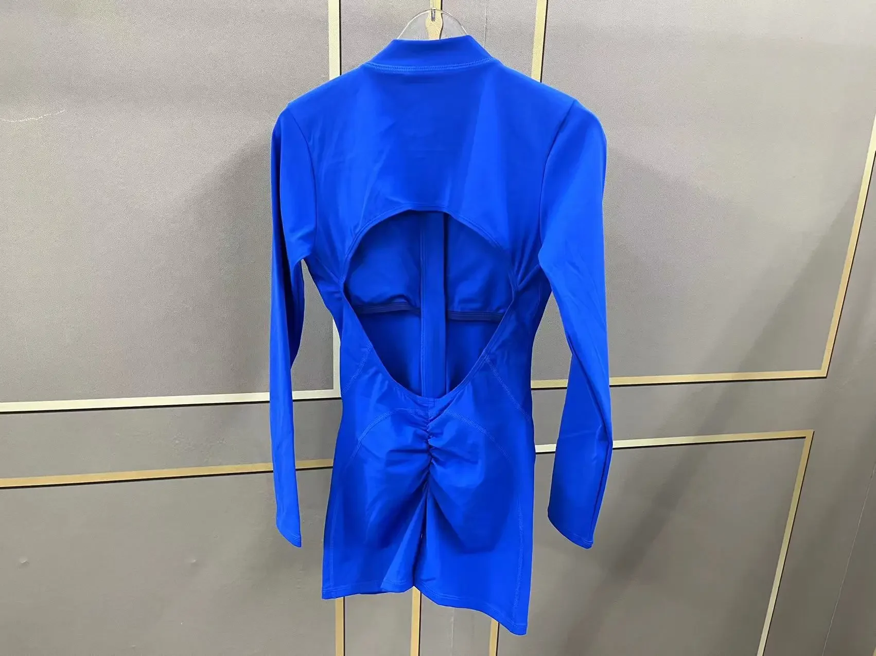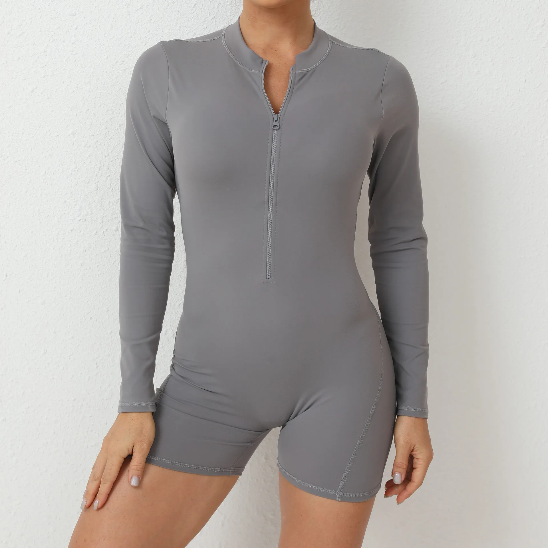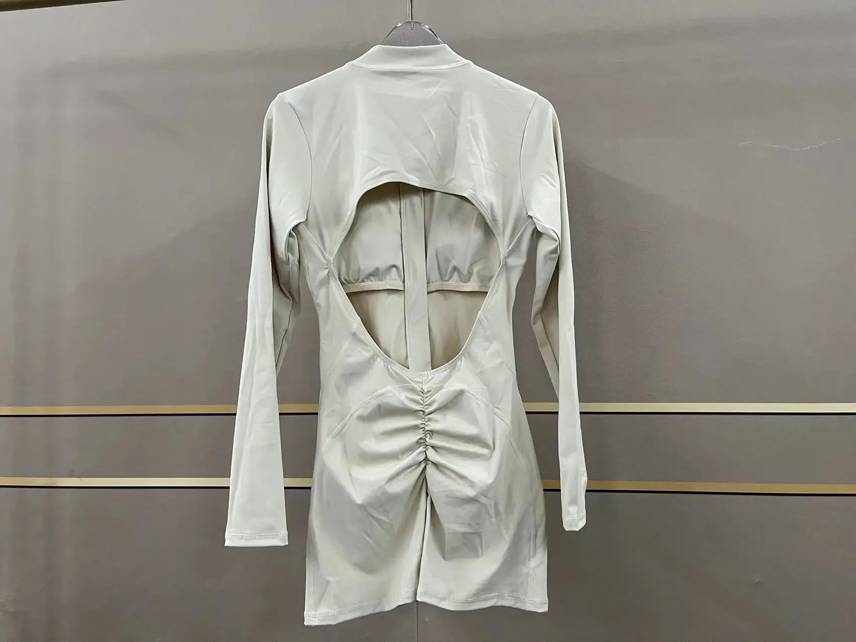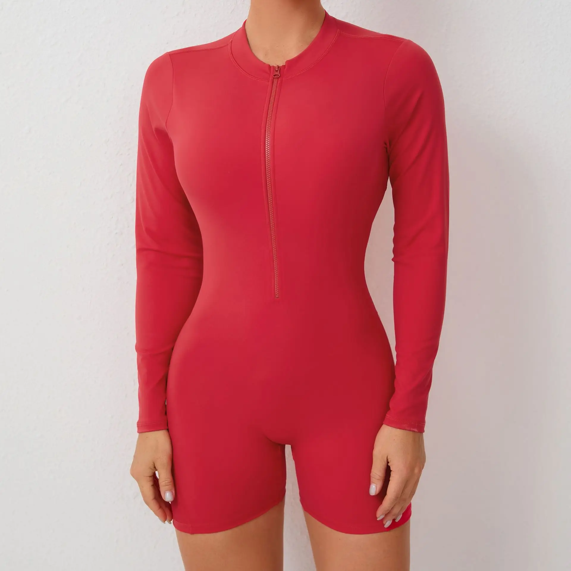V Back Scrunch One-Piece Suit Push Up Sports Jumpsuit Woman Fitness Zipper Overalls Workout Rompers Women Gym Bodysuits Female